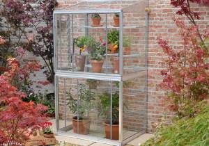 A popular alternative to a free-standing greenhouse, a small lean to mini greenhouse is a compact structure which leans and fixes onto a wall, as the name suggests. This can be a suitably stable garden wall, the side of a garage or, more commonly, the exterior wall of a house.
