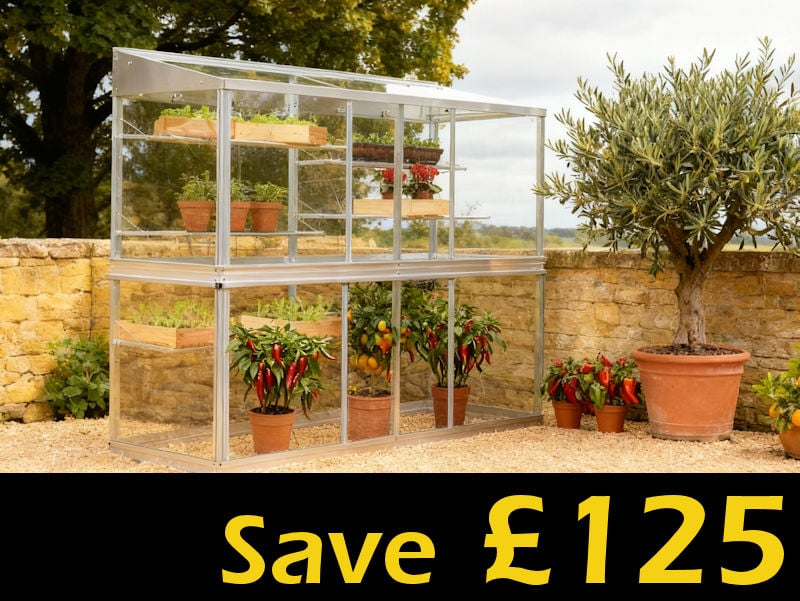 Our 0.8m (2ft 8in) City Growhouse is just £529 in plain aluminium, saving £135 off our list price.