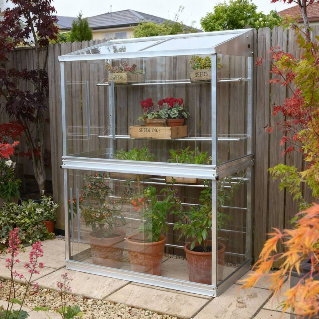 If the fence is draughty, there are a couple of options. You could fit a glass back to the greenhouse – most models are available with an optional glass back, or you could fit a sheet of Dibond at the back, there are online stores that will cut the sheet to size and deliver it to you.