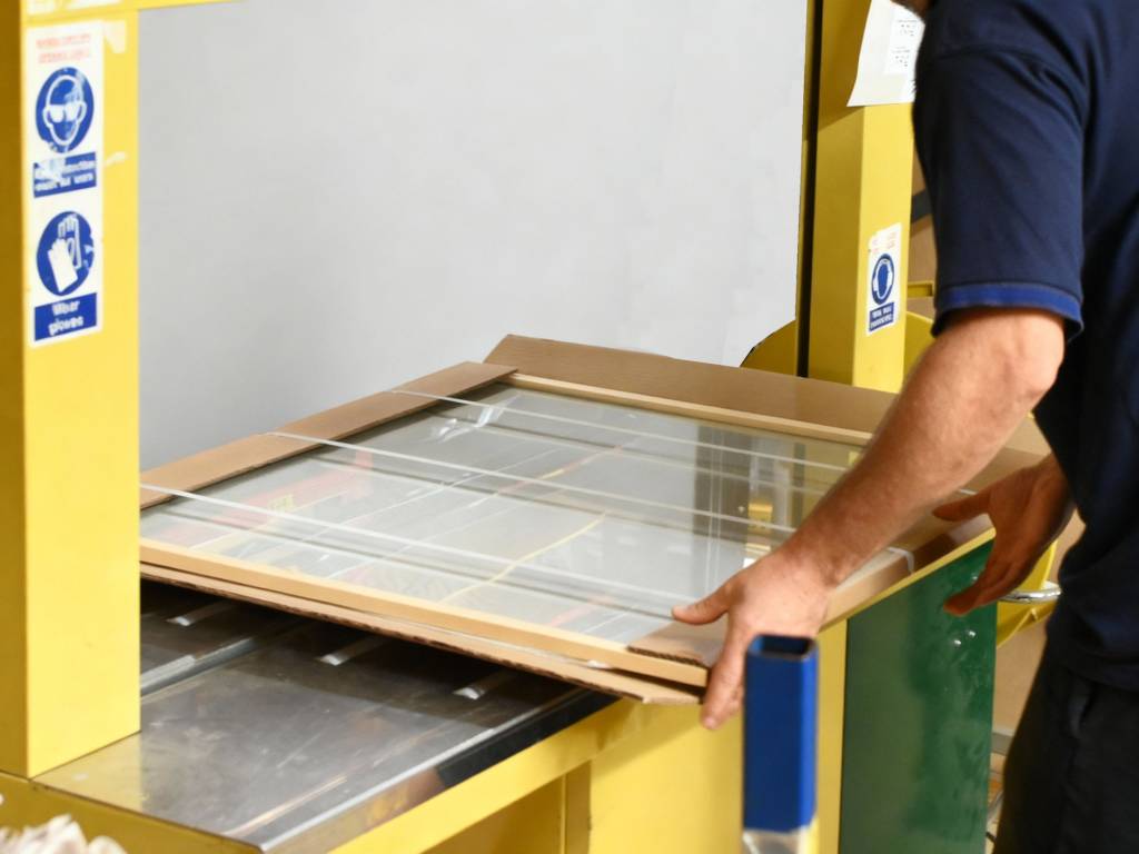 To ensure the greenhouse glass arrives safely the glass has to be packed into smaller packages. Specialist padding around the glass protects the edges of the glass, which are the most vulnerable parts of a toughened glass sheet.