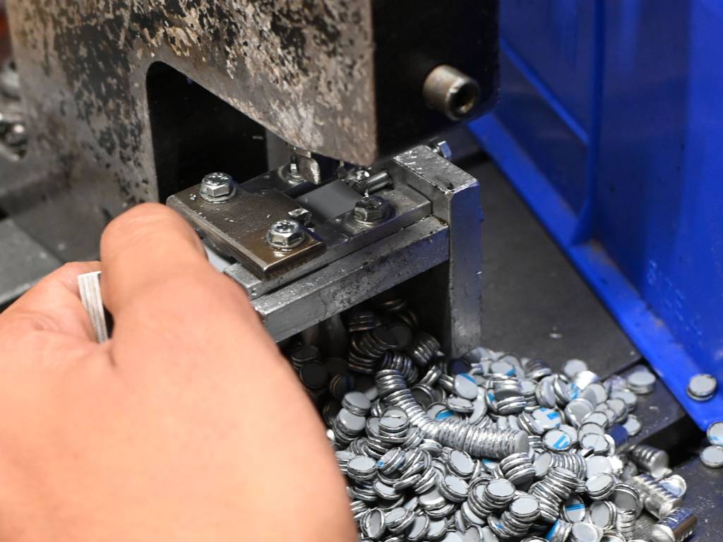 Once all of the parts are fully coated, the racks of components are loaded into the oven and baked for 20 minutes. The items are allowed to cool before they are unloaded.