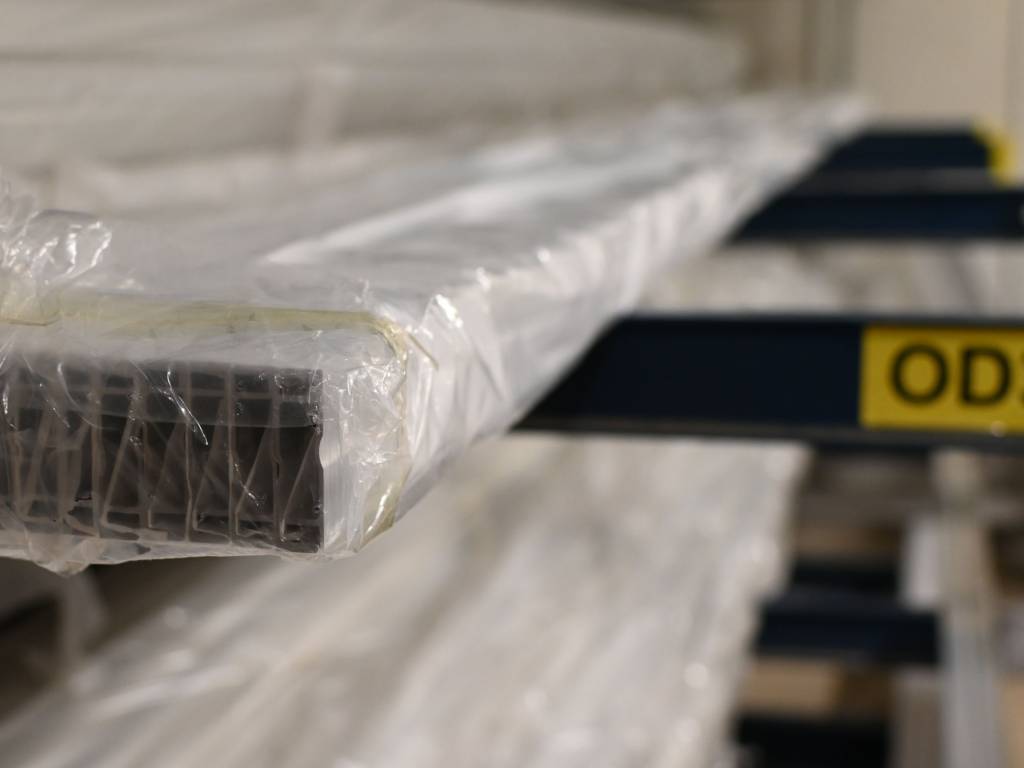 The aluminium is extruded to our own profile designs and shipped from the mill in long lengths.