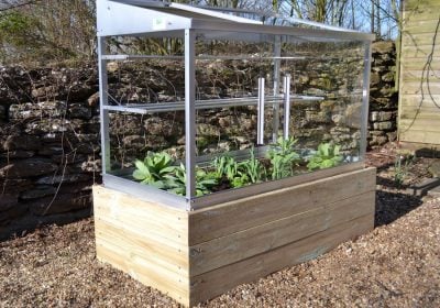 Timber raised bases can serve two purposes, they can either be filled with soil to allow soil grown crops in the mini greenhouse, or they can have slats fitted to make the floor of the Mini greenhouse higher – ideal if bending is more difficult of for wheelchair users.