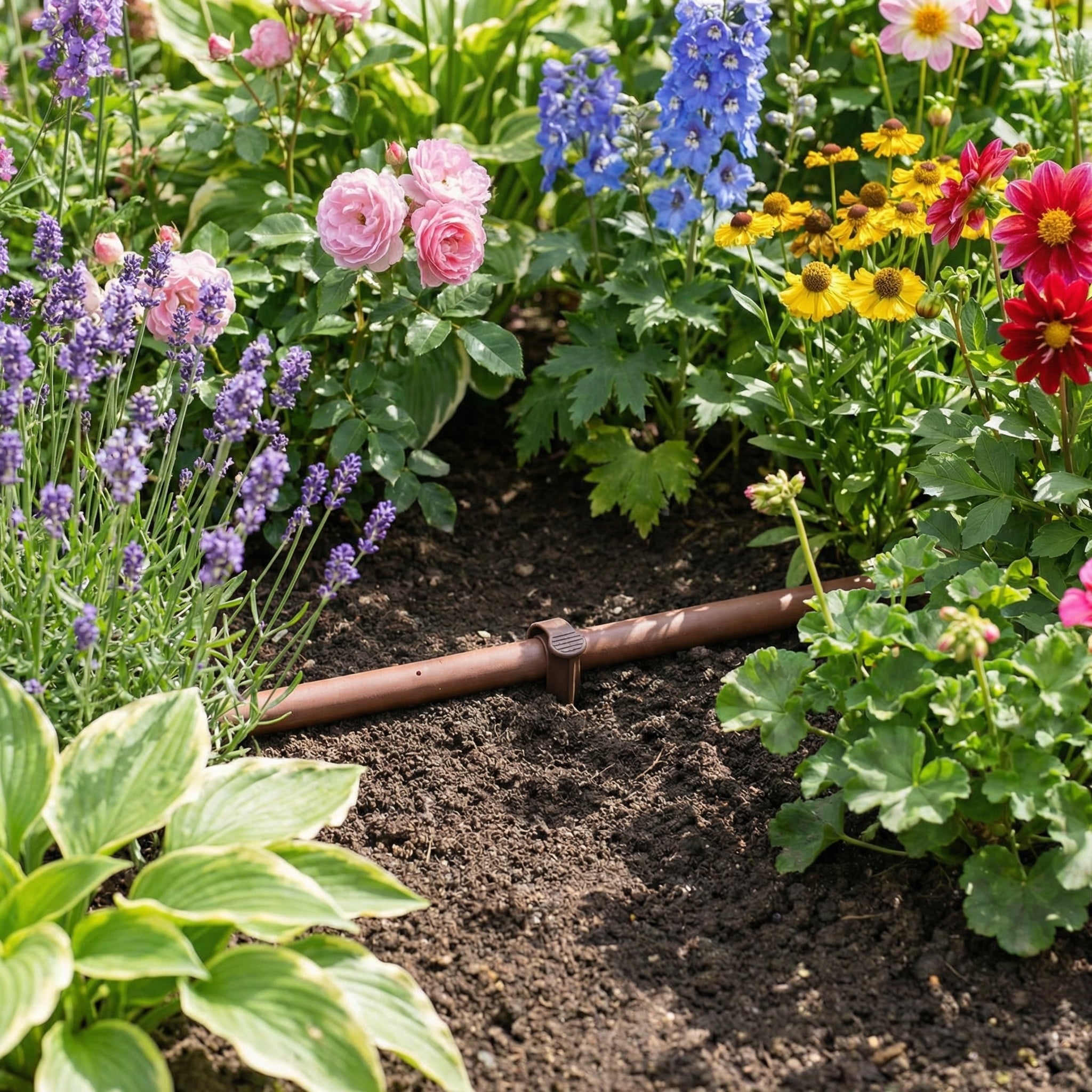 Complete drip kit for watering beds and borders up to 12.5m2 (269 square feet). Fittings to connect to outdoor tap or hosepipe.