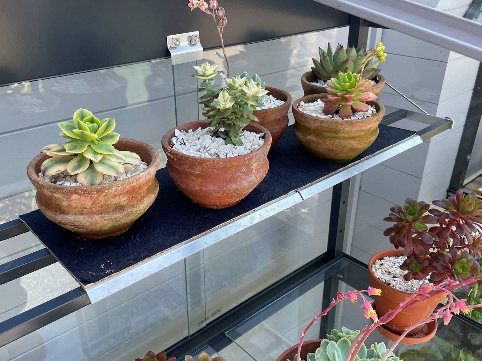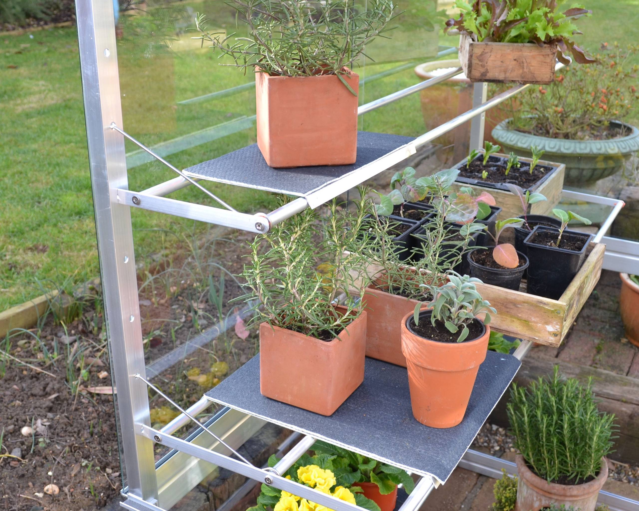 The shelf cover sets allow pots to stand on the shelves, and each one comes with it’s own water absorbent mat. The Narrow pack consists of three shelf covers suitable for the narrow shelves. The Wide pack consists of two shelf covers for use with the wide seed tray shelves.